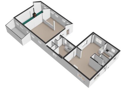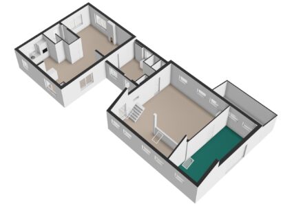 – Achter de bijkeuken bevindt zich een grote kamer. Deze ruimte is nog vrij in te delen en kan voor diverse doeleinden in gebruik worden genomen. Ook bevindt zich hier de trapopgang richting de verdieping van het achterste gedeelte van de woning.