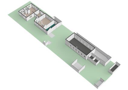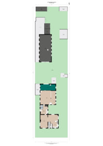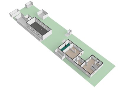 – Op het achter terrein bevindt zich een vrijstaande loods van ca. 14 meter lang en 6 meter breed en heeft een hoogte van 3,8 meter. De ruimte beschikt over elektra en heeft een vliering. Deze ruimte is ideaal voor stallen van voertuigen of voor een bedrijf aan huis.