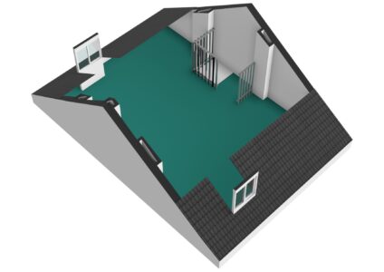 – Open zolderruimte met opstelplaats voor de c.v-combiketel (2017). De ruimte (ca. 5.78 m x 8.00 m) is nog vrij in te delen, momenteel in gebruik als logeerkamer.