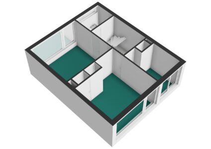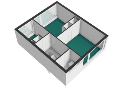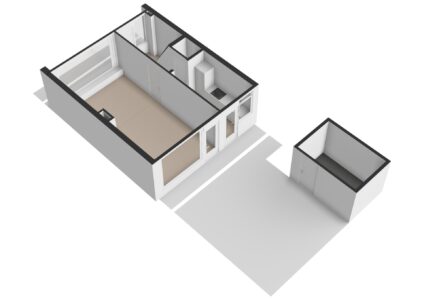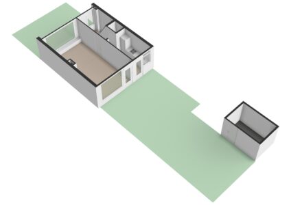 – Badkamer aan de voorzijde is voorzien van een inloopdouche, wastafel en opstelplaats voor de wasapparatuur.