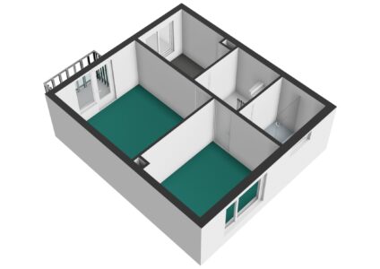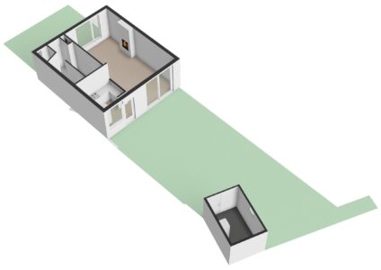 – Badkamer aan de voorzijde van de woning beschikt over een inloopdouche, toilet, wastafel en designradiator.