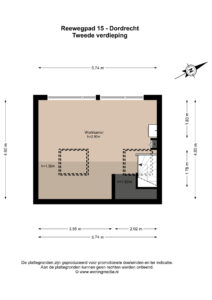 – Slaapkamer aan de achterzijde (ca. 3.74 m x 3.61 m) beschikt over een vaste kast.