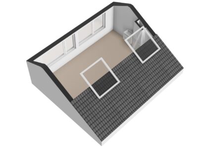 – Vanwege de nokverhoging in 2000 is er een open zolderkamer ontstaan (ca. 4.80 m x 5.74 m). Momenteel is deze ruimte in gebruik als werkkamer, ook zeer geschikt als slaapkamer. Tevens bevindt zich hier de opstelplaats voor de c.v-combiketel (2013) en een wastafel met koud en warm water.