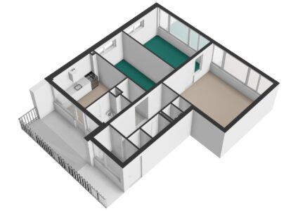 – Keuken beschikt over een keukenblok met spoelbak, opstelplaats voor de boiler en geeft toegang tot het balkon.