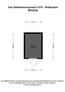– De eigen berging bevindt zich op de begane grond (ca. 2.85 m x 1.91 m).
