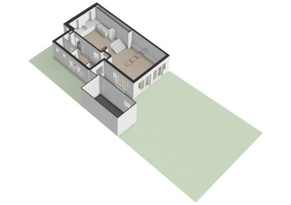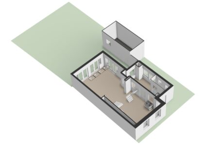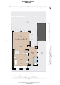 – Hoogteverschil richting de woonkamer, opvallend is hierbij de hoogte van 3 meter en aan de voorzijde zelfs 4 meter. Via de openslaande deuren is de achtertuin te bereiken.